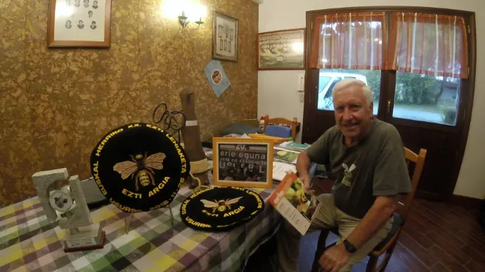 Gurutzen eta Nafarroako erlauntzetan ekoitzitako eztia saltzen du Juan Mari Arabolazak